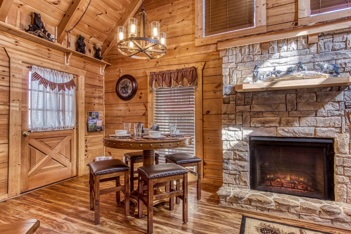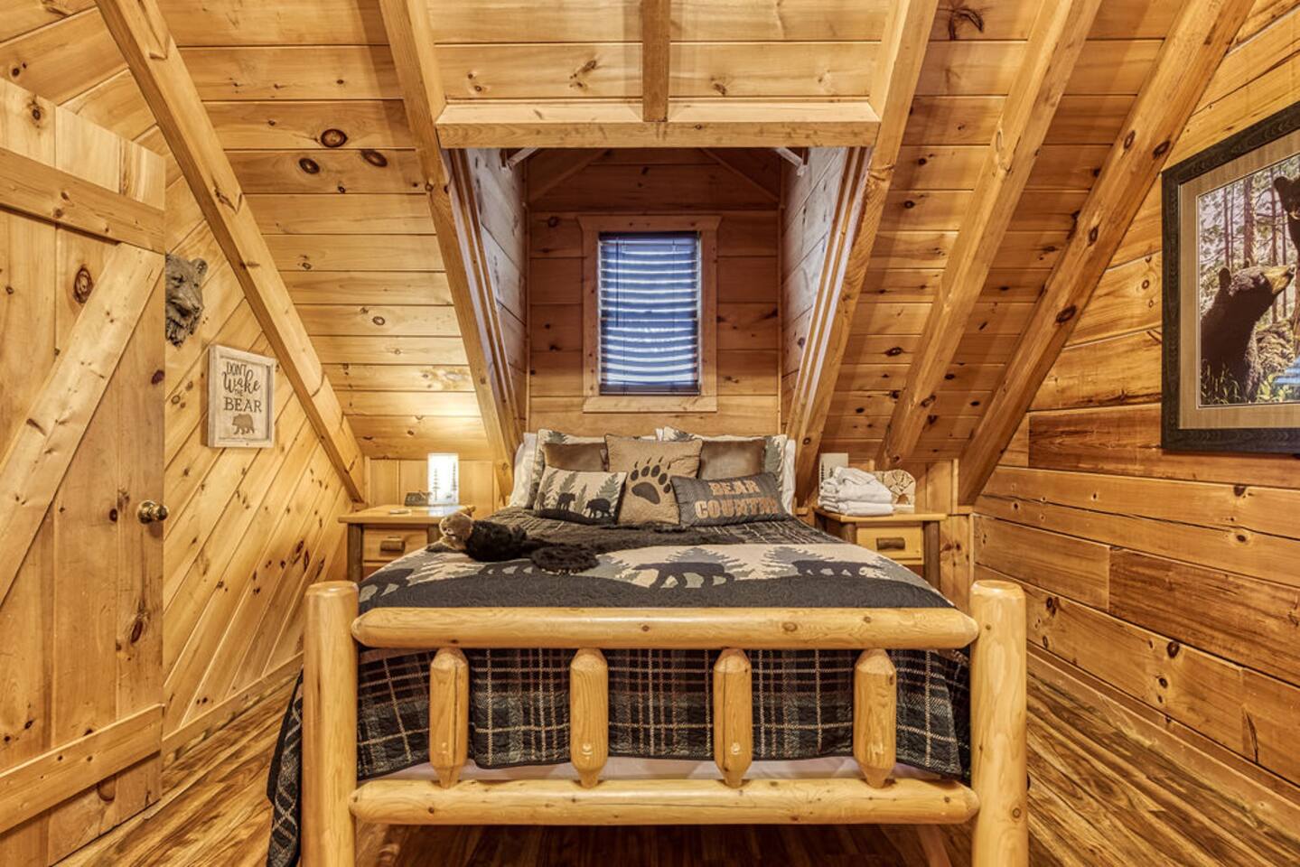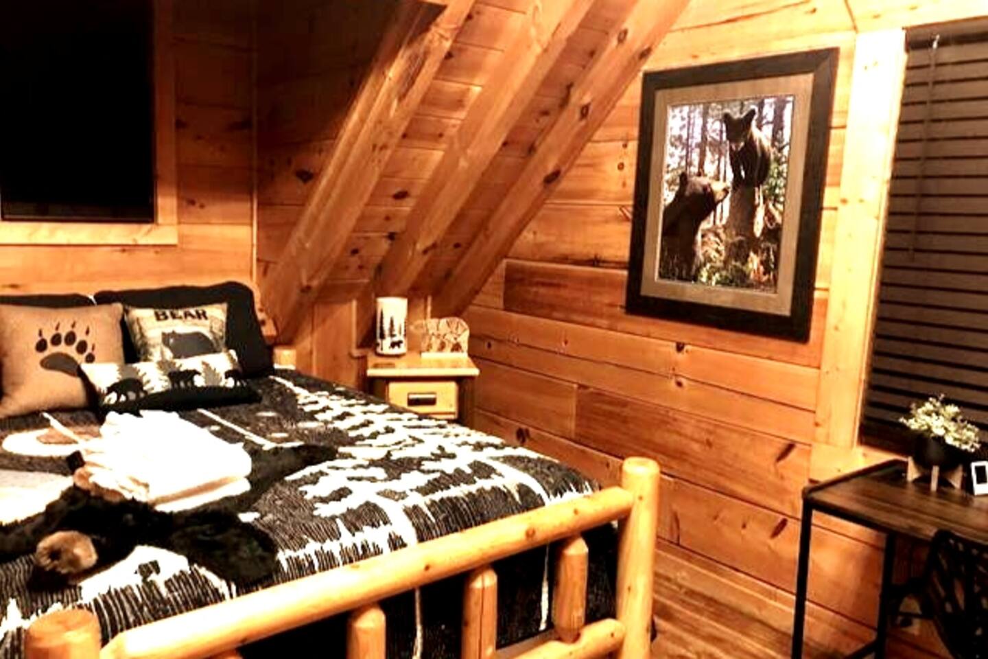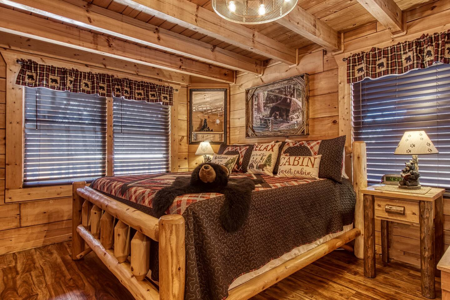 Lovely gated community in a secluded area close to nature, yet close to all the action! Gorgeously decorated, charming cabin with: - a master suite w/jetted tub - a kids' loft with bunk bed, arcade, toys - a hot tub on outside deck - an indoor (heated!) community pool Bear Corner is a true log cabin with black bear-themed decor. Truly cozy and homey; the perfect place to return to and relax after a day of fun activities in the area. Even Goldilocks would consider Bear Corner "just right"!