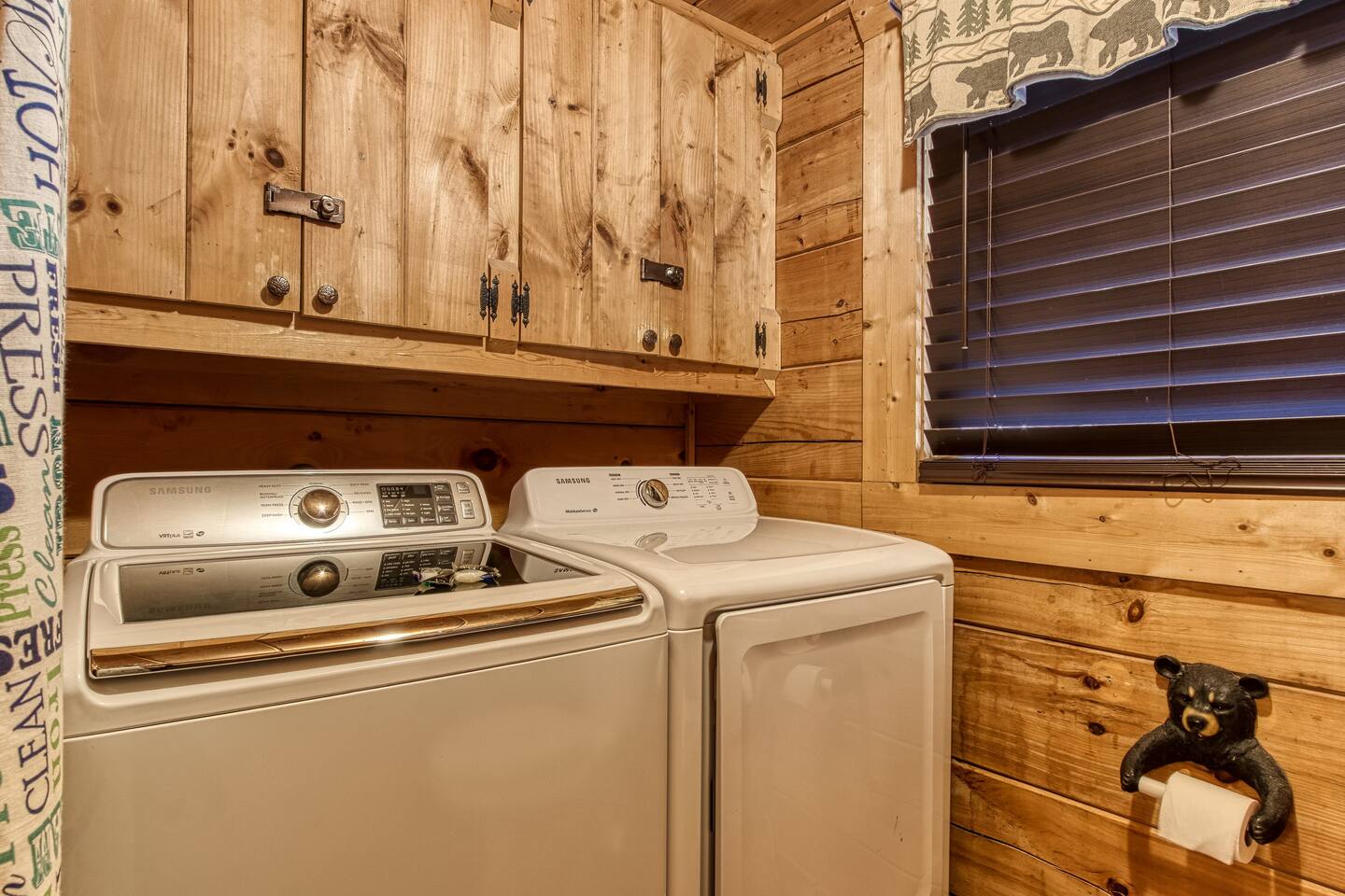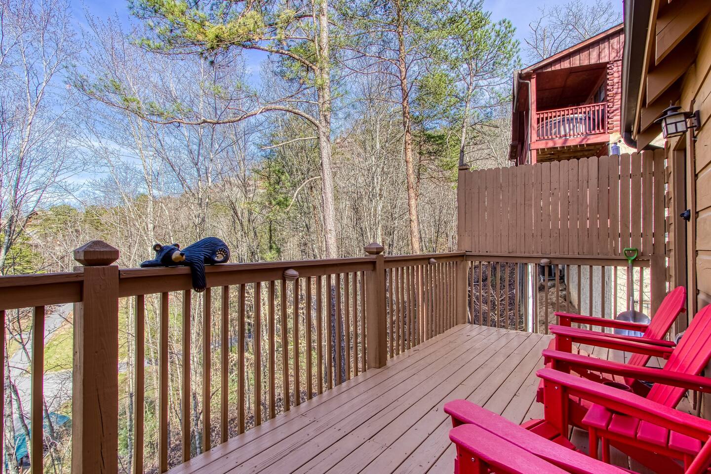 Only 1.5 miles to Dollywood (you can sometimes hear the whistle from the train! - and sometimes see fireworks!). Yet it is secluded and peaceful - a perfect balance between relaxation and being close to all the action! The cabin is located in a gated community. The area is hilly, but the road is paved and maintained. There is a community pool (indoor, heated) that you can just make out through the trees from the back deck for you to enjoy! Parking is free in front of the cabin, and there is extra parking next to the clubhouse for trailers/RV's.