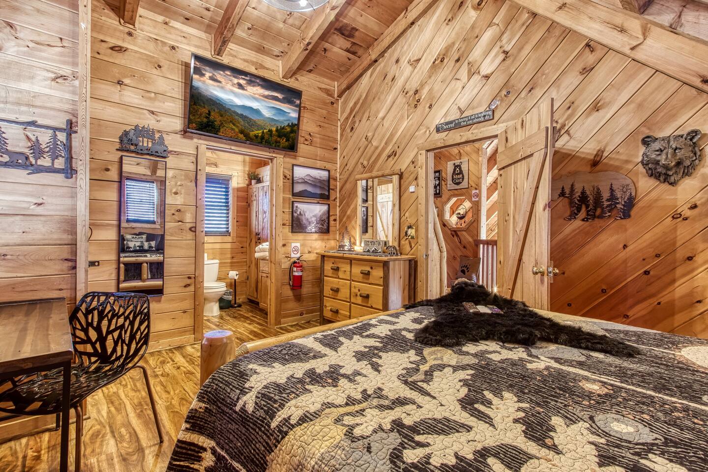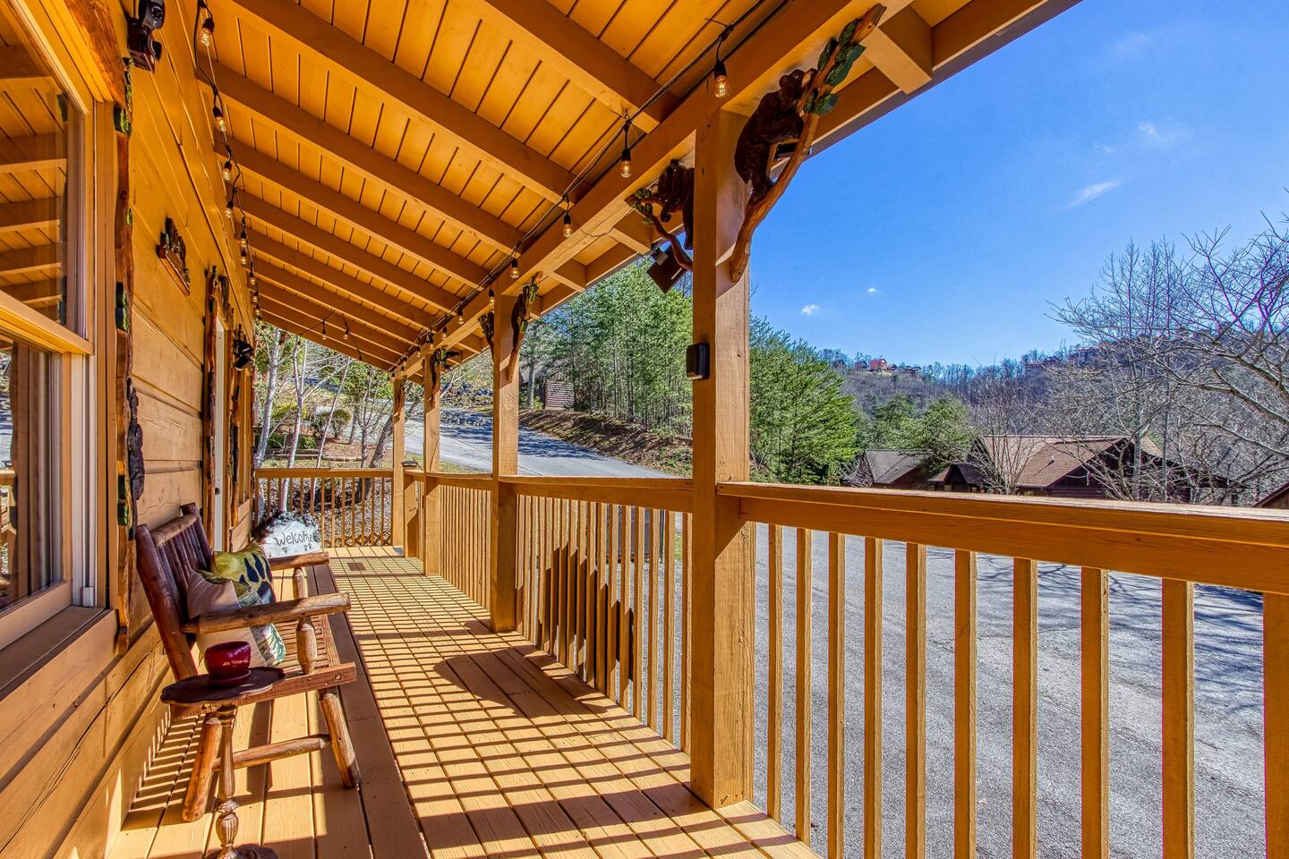 The cabin is nestled in a gated community in the mountains. So close to Dollywood, you can hear the train whistle from the front porch and can see fireworks over the mountain from Dollywood during the season!